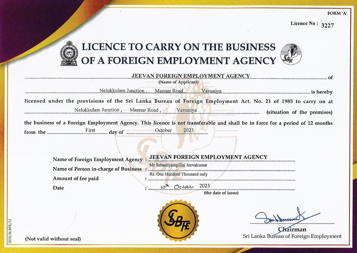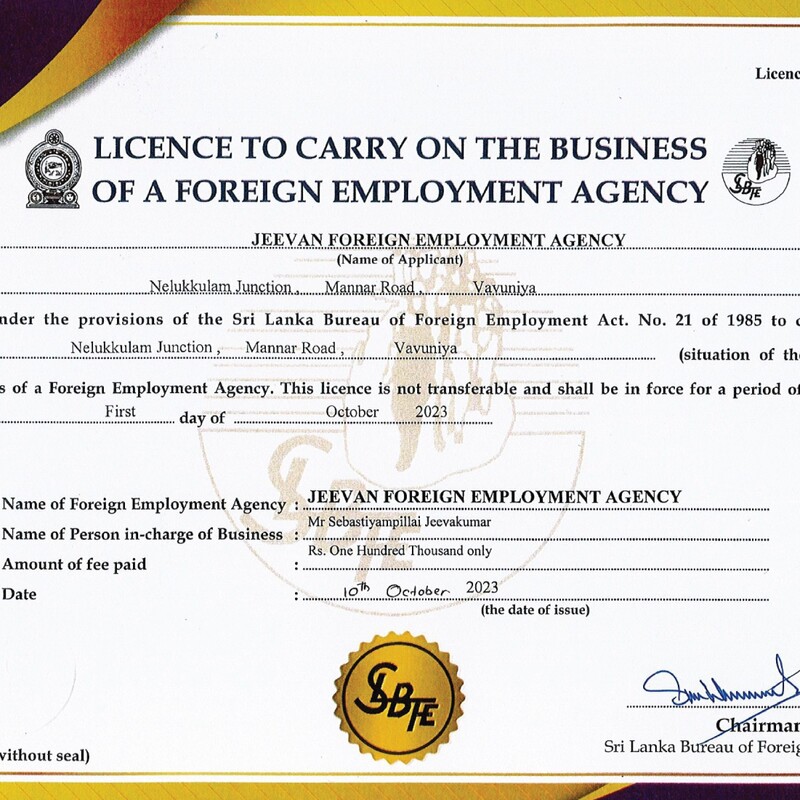 - Licensed & Registered (SLBFE REG. NO. 3227)